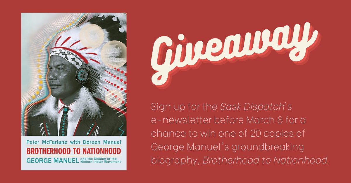 Thanks for reading our newsletter! We’ve teamed up with Between the Lines Books for a giveaway to thank everyone who’s tuned in. If you’ve already signed up for the newsletter, you’ll be entered into a draw to win one of 20 copies of Peter McFarlane and Doreen Manuel’s book Brotherhood to Nationhood: George Manuel and the Making of the Modern Indian Movement. If you haven’t already signed up (what are you waiting for!?) make sure to do so before March 8 to be entered to win!